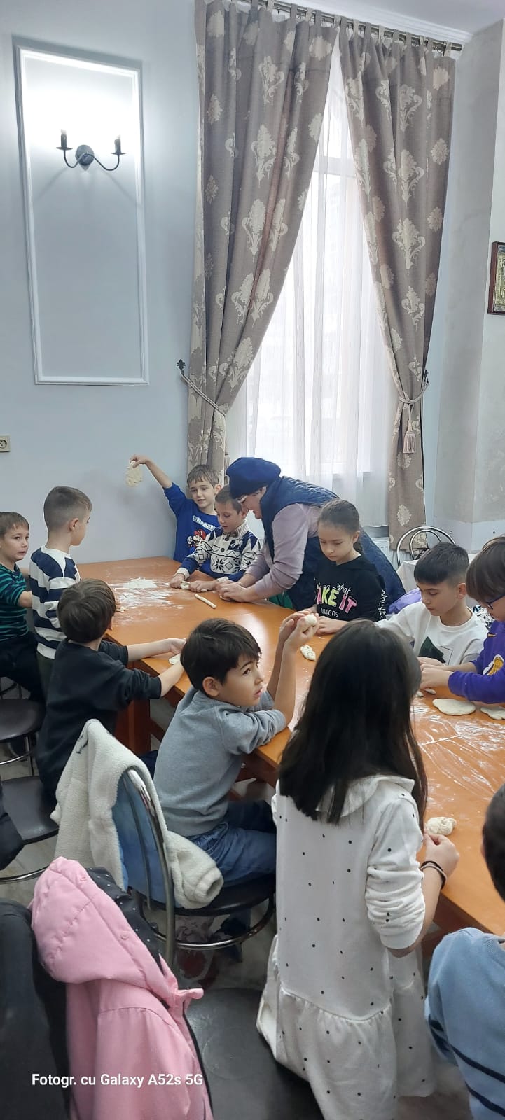 Răsplata nu a întârziat să apară: copiii au primit daruri pregătite special pentru ei, lăsate de Moș Crăciun, spre marea lor bucurie. Atmosfera de sărbătoare a continuat în Centrul multifuncțional al parohiei, unde elevii au participat la o activitate practică și recreativă – modelarea gogoșilor. Cu mult entuziasm, cei mici au frământat, au modelat și apoi au savurat gogoșile pregătite chiar de ei.
